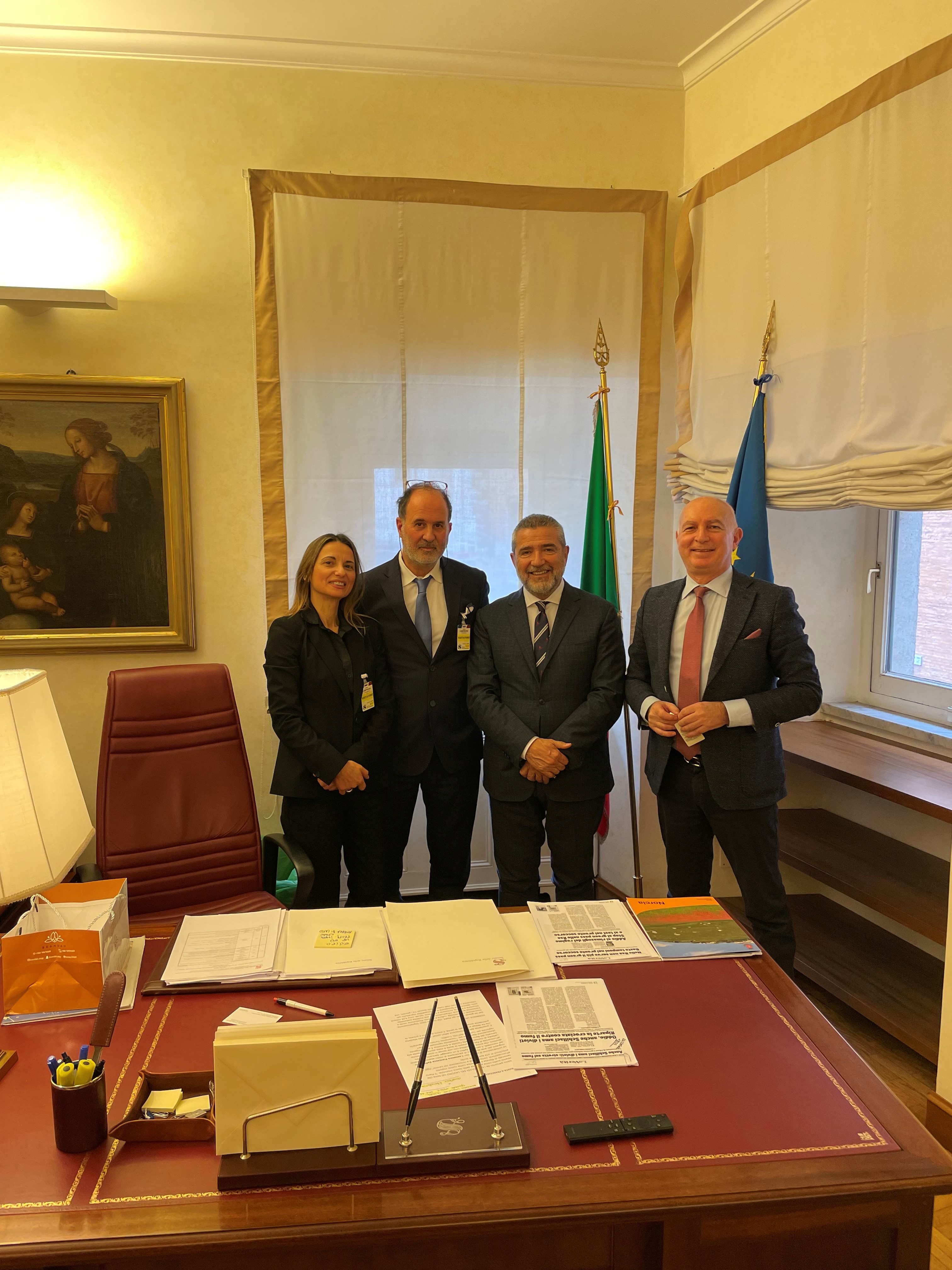 Ilpresidente Massimo Pulin e la vicepresidente Marta Mussini assieme al componente di Giunta Angelo Burini hanno incontrato in Senato, il presidente della 10a Commissioni Affari Sociali, Francesco Zaffini
